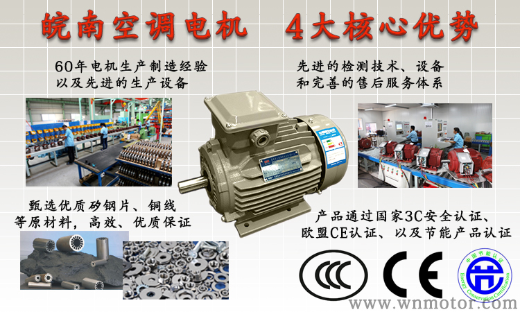 壓縮機是空調制冷循環系統的動力核心,而為壓縮機提供原動力的“心臟”—空調電機的好壞將直接影響空調性能。皖南空調專用電機是皖南電機憑借60年專業的電機制造經驗,針對空調特性而研發的新型產品,配套壓縮機應用在中央空調上,具有噪聲低、體積小、重量輕、振動小、效率高、外形美觀、節能環保等特點。
